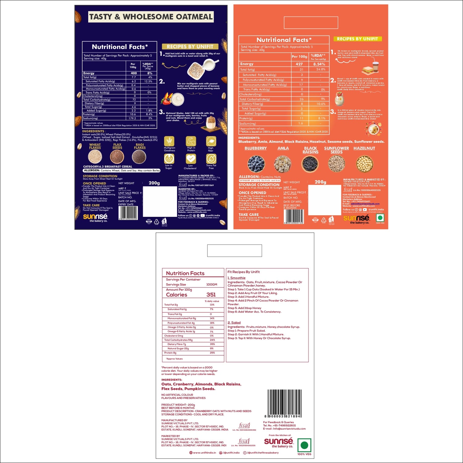 Power Breakfast Trio: Energize your mornings with our Cranberry Oats, Multigrain Oats, and Antioxidant Mix Seeds & Nuts combo.