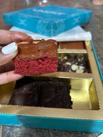 Both the brownies; chocolate and walnut are good, just the red velvet one is like unnecessary or can be skipped, just chocolate variants will do. Or should improve the taste of the red velvet.