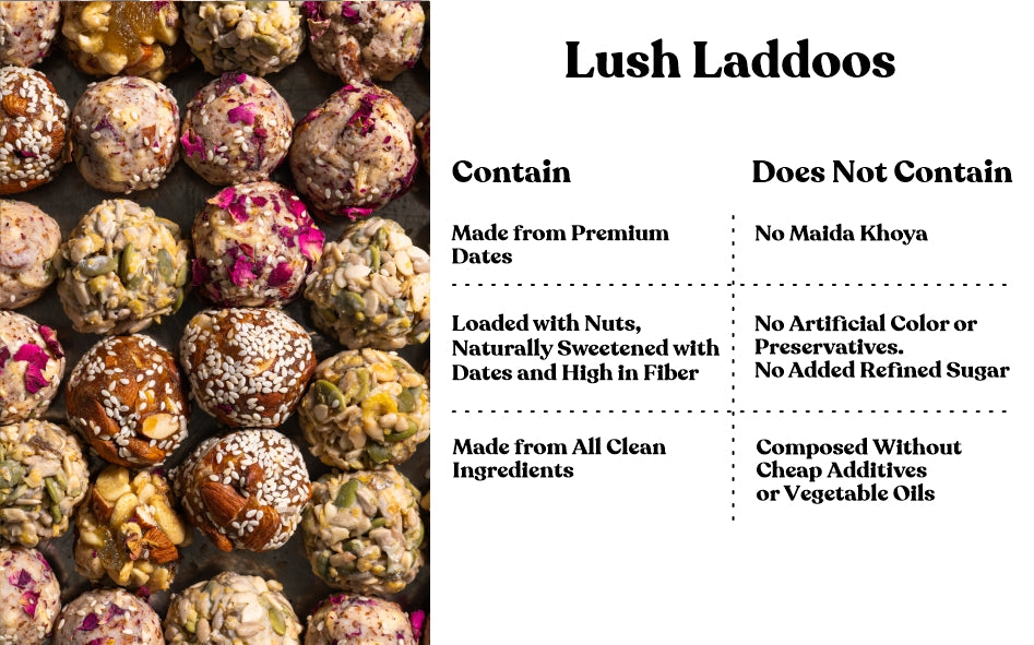 Made from Dates, Almond, Sesame seed, Cashew, Rose, Raisins, Pumpkin Seeds, Sunflower Seeds, Pista, Melon Seeds, Corn Flacks
