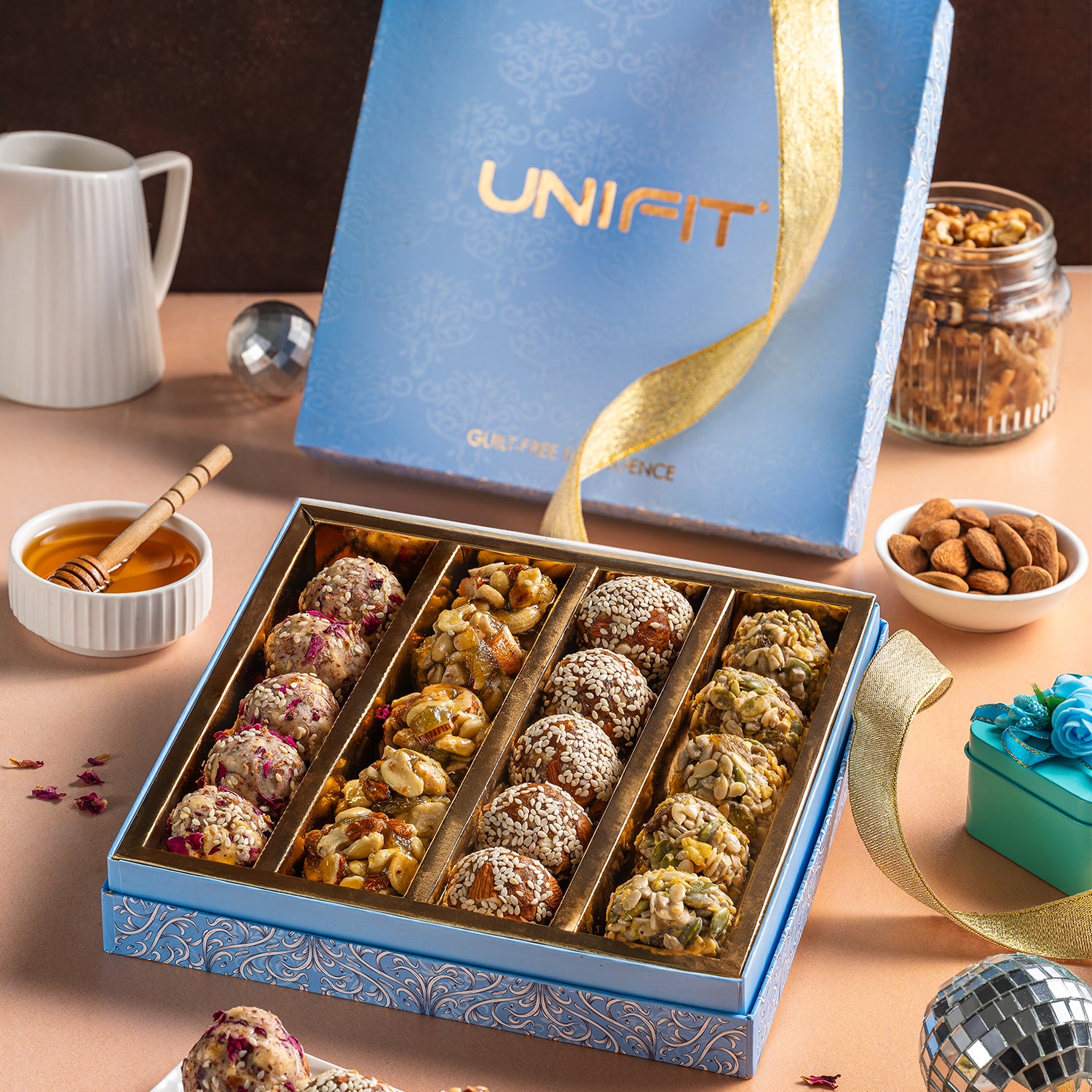 Celebrate Health and Flavor with Unifit Assorted Premium Laddoo Box: Laddoos Free from Refined Sugar!
