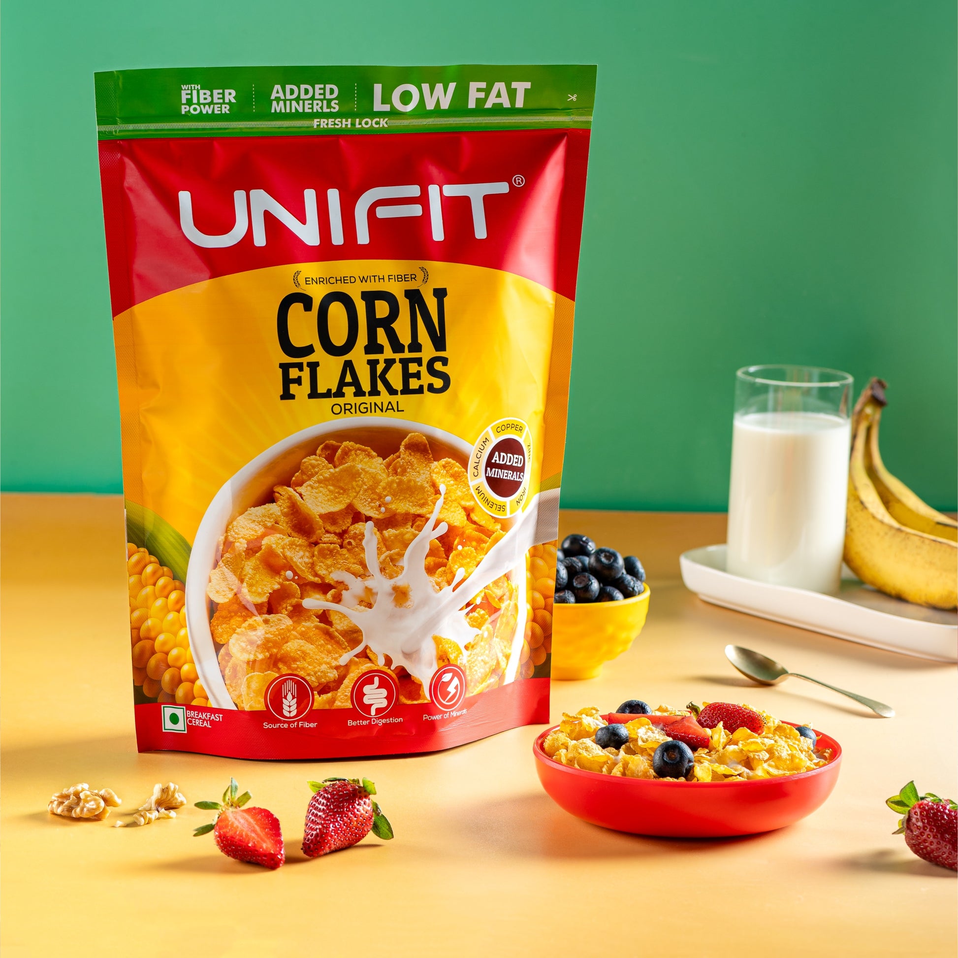 Enhance Your Breakfast Routine with Fiber and Minerals-Packed Cornflakes Original.