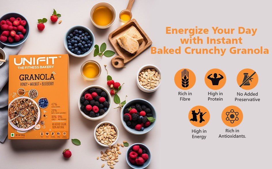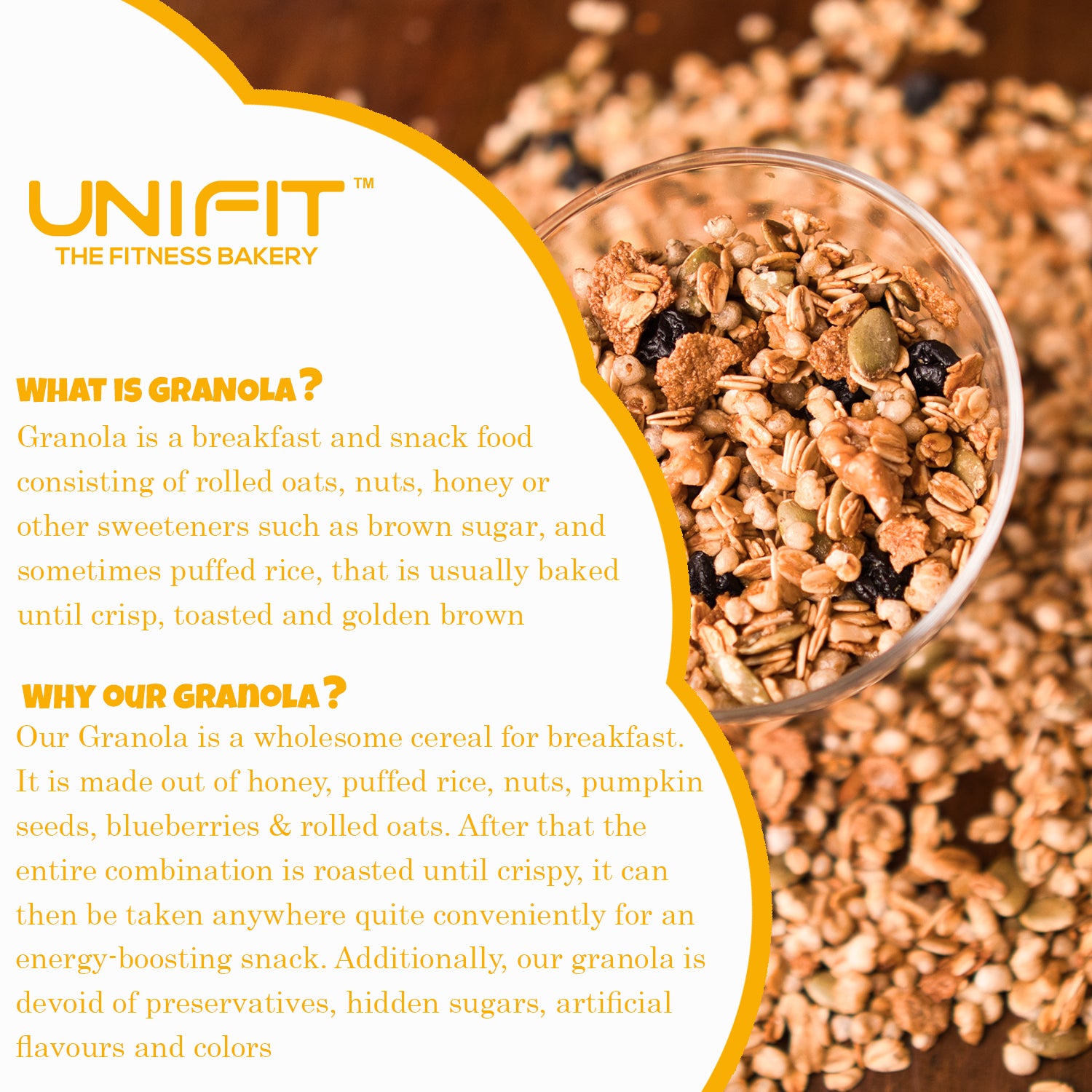 For Health and Fitness: UNIFIT Granola is your go-to snack for weight management and fitness goals. It not only nourishes but also keeps those hunger pangs at bay, making it an ideal anytime snack.