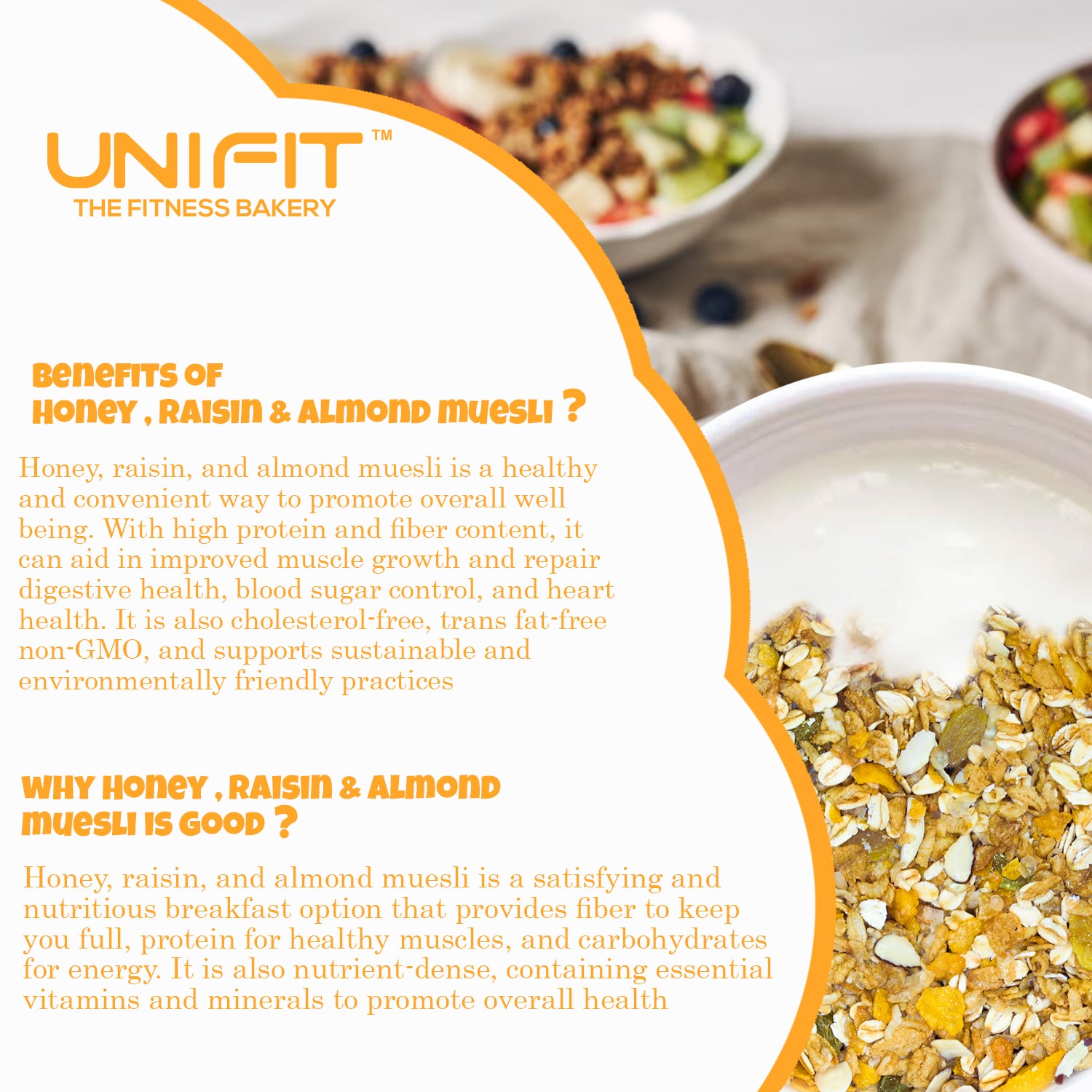 Uncover the Ideal Morning Kickstart: Fiber and Protein-infused Honey Raisin Almond Muesli!