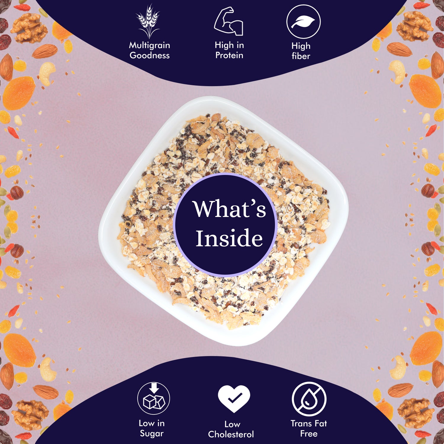 1. High in Fiber: Our Multigrain Oats are a fiber powerhouse, offering a significant portion of your daily fiber needs with every serving. Enjoy the digestive and heart-healthy benefits of a fiber-rich diet.