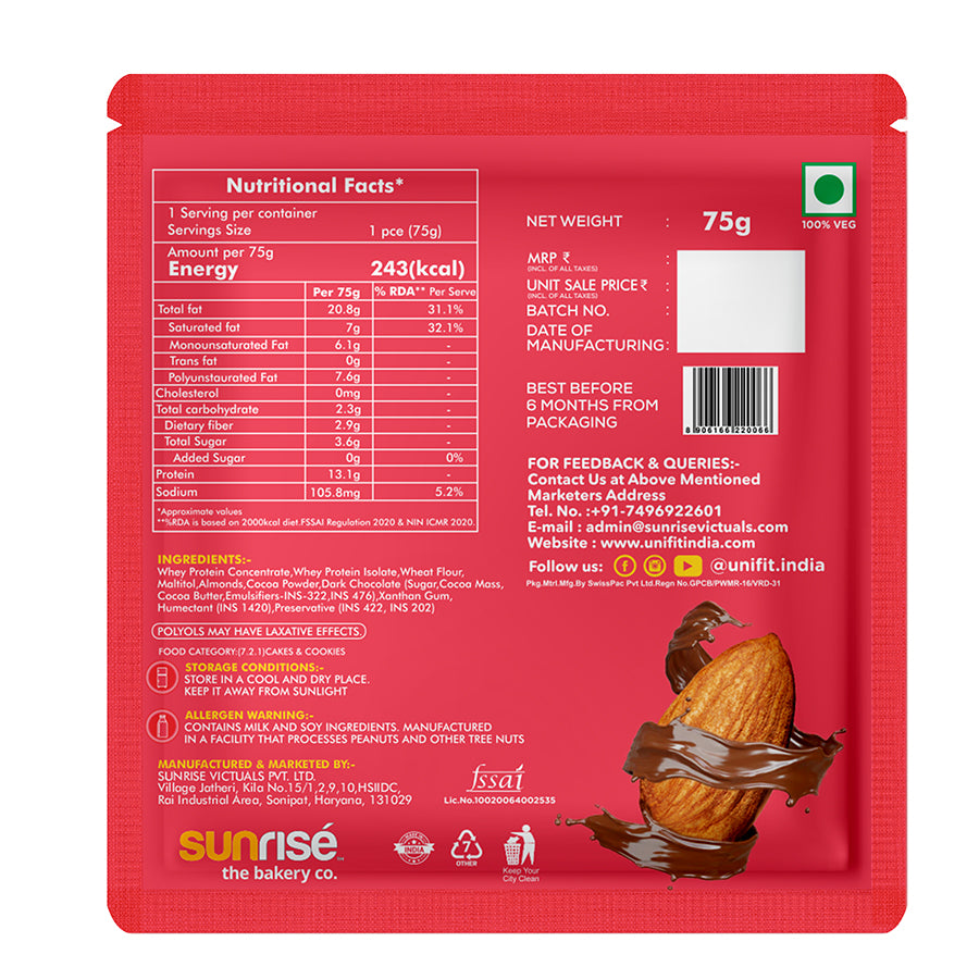 Enriched in Fiber: Crafted with care and natural ingredients, our Almond Brownie is a fiber-rich delight that balances health and deliciousness.
